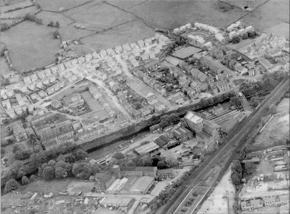 Lower Hopton showing Ledgard Bridge crossing the Calder at the right.