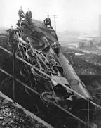 On January 4, 1962 the steam engine, V2 60954, was derailed and turned over down the embankment near the chemical works and is pictured above. It was pulling a goods train that had been diverted onto a siding to allow an express to pass and it over-ran the buffers. Cranes were brought in from Wakefield and Darlington to put it back on the rails. The engine was only slightly damaged but was taken out of service in November 1963 and it went to scrap in January 1964. The photographs are reproduced here by courtesy of Ronald Ellis who was an engineer at the chemical works at the time.