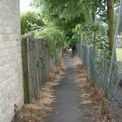 This snicket runs between Wellhouse Lane and Dunbottle Lane by the Cricket Ground.